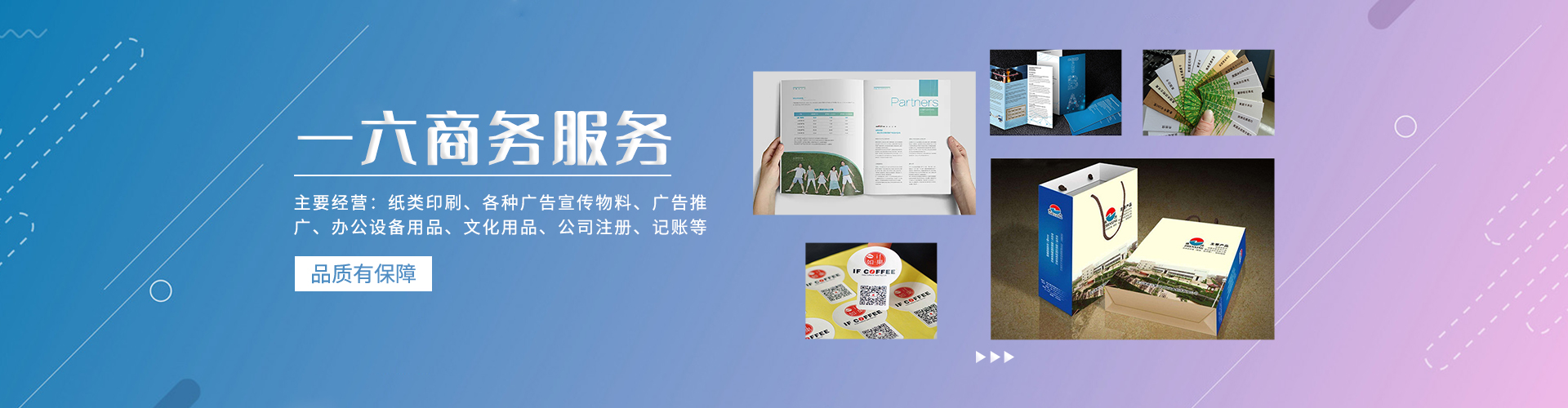 湖南一六商務服務有限公司是長沙圓夢設計印刷有限公司于2016年1月新成立的商務服務公司,注冊資金200萬元人民幣,主要經營:紙類印刷、各種廣告宣傳物料、廣告推廣、辦公設備用品、文化用品、公司注冊、記賬等,以服務各大中小企業為公司經營發展方向,在長沙、株洲等地設有多家分部,與百度、58、360好搜、趕集、分眾傳媒等均有廣告推廣戰略合作!公司的優勢:經多年打拼,已取得傲人業績,為更好服務企業客戶,公司以發展連鎖經營模式,薄利多銷,大規模化生產來提高工作效率和生產質量,降低生產成本,規范明碼標價,杜絕胡亂報價,減少討價還價環節,以更高效率、更好質量、更好價格、更快速度服務更多的中國企業… 查看詳情+